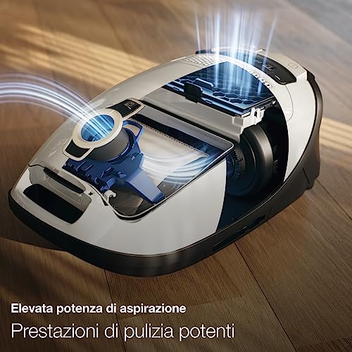 - STRONG CLEANING The vacuum is equipped with the Power Efficiency motor and a HEPA AirClean filter, and provides a 4.5 liter dust bag to catch dust, dirt, and more